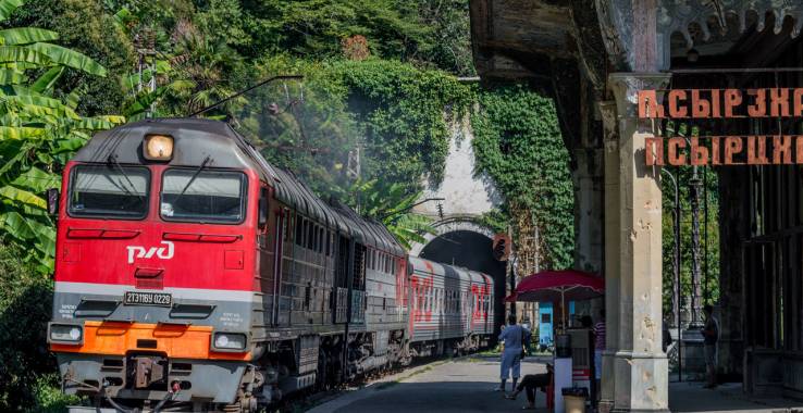 Наиболее востребованным видом транспорта на территории Абхазии являются железные дороги. Их протяженность составляет порядка 220 км. Железнодорожное полотно проложено от станции «Псоу», расположенной на границе с Россией, до платформы «Ингур», неподалеку от границы с Грузией. Несмотря на протяженность путей, добраться на поезде возможно не до всех населенных пунктов страны. Конечной станцией является Сухум. Доехать в расположенные далее города и поселки пока что невозможно из-за проведения восстановительных работ на железнодорожном полотне. Билетные кассы, подключенные к автоматизированной системе управления резервированием пассажирских мест, расположены на станциях Гагра, Гудаута, Сухум, Новый Афон, Цандрыпш.