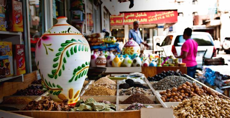 Бахрейн — небольшое государство, однако это вовсе не означает, что привезти отсюда нечего. Дело обстоит как раз-таки наоборот. Весьма вероятно, что не все сувениры, которые вы захотите купить, поместятся в ваш чемодан. Начнем с того, что как и любая другая восточная страна, Бахрейн славится своими коврами. Здесь можно приобрести как фабричную продукцию, так и работы местных мастеров. Высоко ценятся картины в арабском стиле, зачастую выполненные из кожи или ткани. Особым спросом пользуются картины, изготовленные из шелка. Они довольно дорогие, но при этом очень красивые и уж точно станут хорошим и памятным сувениром. Традиционной популярностью у путешественников пользуется бахрейнская керамика. Купить кувшины, широкие блюда, пиалы здесь можно практически везде, начиная от местных рынков и заканчивая специализированными магазинами.