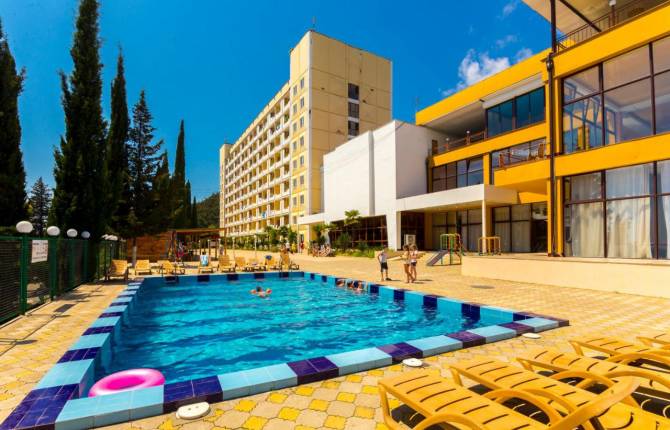 Пансионат имеет два корпуса: 9-этажный, отремонтированный в 2009 году, и новый 3-х этажный с живописным видом на море. Двухместные номера для гостей – уютные и комфортабельные, класса «стандарт» и «полулюкс». Они обязательно оборудованы санузлом, душем, холодильником, телевизором, кондиционером. Выйдя на балкон, вы оцените живописную красоту морского и горного пейзажей.