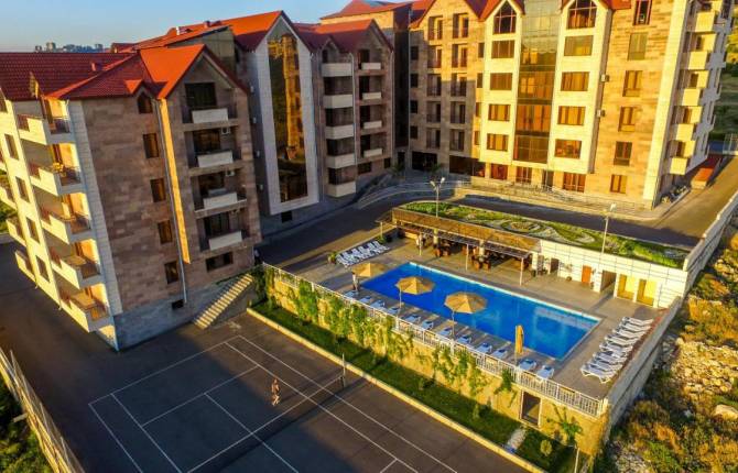 Отель Панорама Резорт расположен в экологичном жилом районе Еревана. К услугам гостей открытый бассейн, тренажерный зал и теннисный корт. Также на территории работает бесплатный WiFi и обустроена бесплатная частная парковка. Светлые сюиты с панорамным видом на город Ереван и гору Арарат оформлены в современном стиле и оснащены кондиционером, телевизором с плоским экраном и сейфом. В собственной ванной комнате с ванной или душем предоставляются фен и халат. В ресторане отеля подаются блюда армянской и интернациональной кухни. Кроме того, гости смогут готовить самостоятельно на кухне со всеми необходимыми принадлежностями. Расстояние от отеля Панорама Резорт до Площади Республики составляет 7 км, а до архитектурного комплекса «Каскад» – 3 км. Институт древних рукописей Матенадаран находится в 6 км. Расстояние до международного аэропорта Звартноц составляет 17 км.