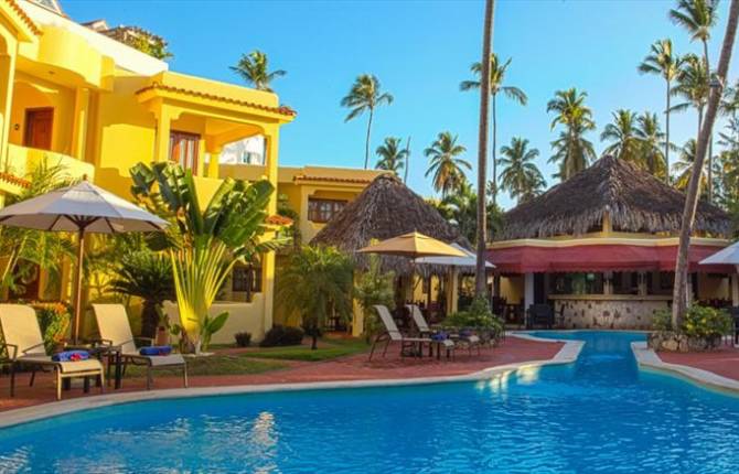Территория отеля очень просторная, а его месторасположение является удобнее некоторых прочих отелей в Пунта Кане. Этот комплекс расположен прямо на берегу Карибского моря, на знаменитом солнечном пляже Баваро, который неспроста так любим приезжими. Номера комплекса в основном для двоих человек. Они обустроены довольно компактно. В каждом номере находится вентилятор на потолке, телевизор со спутниковым телевидением, мини-холодильник и телефон. Также во всех, без исключения, номерах присутствуют ванные комнаты и балконы с видом на красоты местной природы. Уборка в номерах данного отеля проводится каждый день. Система питания в отеле "кровать и завтрак". Сервируют завтрак по принципу "шведского стола". Также на территории отеля находится бар, который открыт в течении всего дня, и где гости смогут насладиться прохладительными напитками в жаркую погоду, работает один ресторан. Для детей оборудован отдельный бассейн, функционирует мини-клуб, проводятся детские дискотеки. В отеле есть сейф, которым туристы, при необходимости, могут воспользоваться. На территории отельного комплекса присутствует автомобильная парковка. Провести время в отеле можно расположившись у бассейна. За дополнительную оплату гости могут воспользоваться услугами массажа или сходить в СПА-центр. Каждый вечер в отеле проводится развлекательная анимационная программа. Любители подводных видов спорта могут воспользоваться услугой уроков дайвинга. Пляж песчаный, расположен в пешей доступности. На пляже шезлонги и зонтики предоставляются бесплатно.