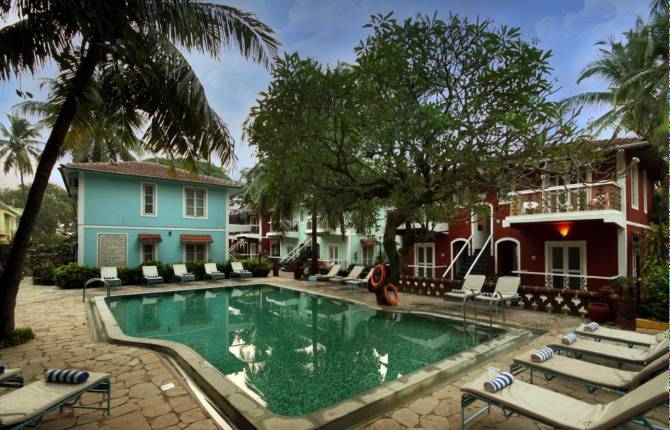 Отель состоит из ярких 2-х этажных вилл, которые выполнены в особой стилистике португальской деревни. Виллам присвоены экзотические личные имена. В каждой из них находится 4 просторных 1-2х комнатных номера. Гостиная дополнена диваном, журнальными столиком, стульями, телевизором, мини-баром. Она оформлена в колониальном стиле. В спальне установлена большая кровать или 2 средние, шкаф. Гости могут воспользоваться индивидуальной ванной комнатой, где есть туалетные и косметические принадлежности. Дополнительная кровать для ребенка (0-12 лет) оплачивается индивидуально. В ресторане отеля предложены блюда интернациональной кухни, можно пообедать на свежем воздухе. Чтобы попробовать аппетитные блинчики, следует пойти в кафе Creparia Candolim, оно оформлено в европейском стиле. Легкие закуски и напитки предложены в баре рядом с бассейном. Когда хотите пообедать либо поужинать в отеле, следует отдельно оплатить «шведский стол». Каждый вечер играет приятная музыка или организовывается представление. На стойке регистрации есть камера для хранения багажа. Можно воспользоваться услугами прачечной, химчистки. Работает салон красоты, где большой спектр услуг. Пляж расположен в пешей доступности от отеля. На пляже шезлонги и зонтики предоставляются платно.