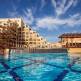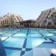 На территории комплекса расположены 3 корпуса пирамидальной формы, которые соединены между собой. В номерах есть индивидуальный кондиционер, телевизор с русским каналом, телефон, электронный сейф, зеркало, мини-бар, набор для приготовления чая или кофе, фен. Отдыхающим выдают халат и тапочки. Мини-холодильник установлен не во всех номерах. Меняют белье и убирают в номерах каждый день. Room service – круглосуточная услуга. Всего в отеле 6 ресторанов, 5 баров, 1 снек-бар, 1 чайная зона Cup N Go, 1 круглосуточный лобби-лаунж Aisha lobby lounge. В главном ресторане Seven Heights завтраки, обеды и ужины подают по системе «шведский стол». Рестораны Aja, Fish Bone, Meat Point, L’Olivo, Lalezar работают по системе a la carte. Для детей в возрасте от 4 до 12 лет работает бесплатный клуб Rixy Club, для подростков в возрасте от 13 до 19 лет есть бесплатный клуб Teen’s Republic. Для маленьких отдыхающих в отеле обустроен детский бассейн открытого типа, площадка для игр (открытая и крытая). В ресторане можно заказать блюда из детского меню. По просьбе родителей к столу могут поставить высокий стульчик. Детская кроватка предоставляется по запросу. Услуги няни платные. На территории гостиничного комплекса имеется 3 бассейна с подогревом зимой, возле которых есть бесплатные полотенца, зонтики, шезлонги, матрасы. Среди бесплатных услуг: посещение фитнес-центра, сауны, турецкой бани, SPA-центра, развлекательные шоу, игра в настольный теннис, пляжный волейбол, бадминтон, мини-футбол, бильярд. Платные услуги для гостей отеля: массаж, игра в гольф на территории Al Hamra Golf Club, водные виды спорта. На территории отеля есть ночной клуб Inferno, интернет-кафе, банкетный зал, бизнес-центр, 3 конференц-зала, салон красоты, магазины, бесплатная парковка. На собственном песчаном пляже отеля, который на 300 м растянулся вдоль моря, можно отдохнуть на бесплатных шезлонгах и матрасах. Зонтики и полотенца также бесплатные для гостей комплекса.