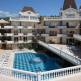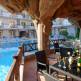 Отель многие называют замком, так как он во многом передает своим посетителям рыцарский дух. Прямо посреди этого замка под открытым небом располагается огромный бассейн с джакузи с пресной водой. Вокруг них расставлены шезлонги, которые дают возможность отдыхающим получить южный загар. Здесь же возле бассейна гости могут насладиться разнообразием блюд в уютном ресторане Камелот. Вечером у бассейна с ночной подсветкой изысканное мастерство шеф-повара и по-настоящему крымское радушие официантов позволит погрузиться в атмосферу незабываемого отдыха. Уютная зеленая парковая зона позволяет гостям отеля насладиться неповторимым коктейлем горного и морского воздуха.