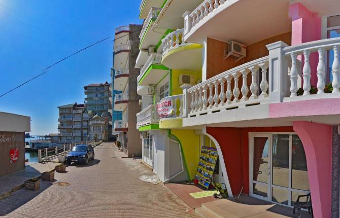 Отдыхающие могут воспользоваться бесплатным Wi-Fi. Все номера оснащены кондиционерами, способными защитить в самую жаркую погоду. Общий номерной фонд отеля – 24 номера. Построена гостиница в 2005 году, тогда как в 2012 была реконструирована. Отель создан в ярких современных тонах. В каждом из номеров есть телевизоры и санузлы с душем.На каждые два номера предусмотрена кухня, оснащенная микроволновой печью, холодильником, чайником и набором посуды. В пятиэтажном здании отеля размещены 3 типа номеров – 4-местный двухкомнатный люкс, в котором установлены мягкий уголок, 2 шкафа, двуспальная кровать, кондиционер, журнальный столик, балкон и санузел. Также есть два типа двухместных однокомнатных люксов, отличающихся между собой видом из окна – первые выходят на горы, тогда как вторые – на море. Обращаем внимание, что в номерах с видом на море спальное место – мягкий уголок, размером 1,60 х 1,90 м. А в номерах с видом на горы спальное место – двуспальная кровать.