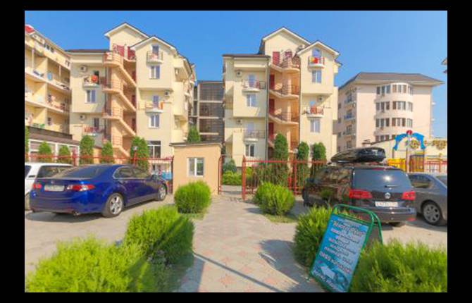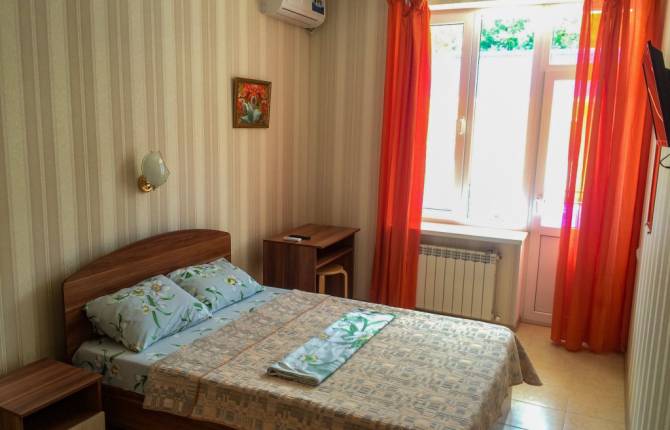 Гостевой дом представлен двумя пятиэтажными корпусами с комфортабельными номерами. В каждом из них насчитывается по 16 номеров. Количество мест в отеле – 64. Для размещения приехавших туристов предлагаются двухместные номера класса «стандарт», «стандарт-мансарда». Площадь каждого номера составляет девятнадцать квадратных метров. В каждом номере находится санузел полной комплектации, спутниковое телевидение, система климат-контроль, функциональная мебель и холодильник. Внутренний двор гостевого дома полностью благоустроен. На парковой территории встречаются альпийские горы с фонтанами, цветники, оборудованные детские площадки, все необходимые аксессуары для приготовления барбекю и шашлыка, открытый бассейн с постоянным подогревом и гидромассажем, который выполнен в виде падающего водопада. В работающем кафе каждый турист может заказать себе комплексное трехразовое питание или исключительно завтрак, рядом работает бар. Для отдыхающих на личном транспорте предоставляется место на парковке. Вся территория гостевого дома круглосуточно охраняется.