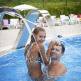 Дети принимаются с любого возраста, до четырех лет бесплатно без места и питания. До 14 лет со скидками. Лечение предоставляется также с четырех лет. В санатории есть детский бассейн с горками, детская комната с воспитателем, детская игровая площадка. В прокат можно взять кроватку-манеж, детский стульчик и спортивный инвентарь. Также работает детская анимация.