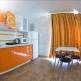 В трехэтажном корпусе «Золотой рыбки» для постояльцев приготовлены 2-3-х местные номера, которые оснащены санузлом с душевой кабиной, необходимой мебелью, телевизором и кондиционером. В комнатах действует Wi-Fi. Также в оплаченный сервис входит смена полотенец через 3 дня, постельное бельё меняют раз в 5 дней, имеется общая терраса со столиками. В стоимость проживания входит завтрак в формате «шведский» стол. При желании можно дополнительно оплатить приготовление обедов и ужинов. Пансионат работает сезонно, в начале и в конце сезона постояльцы обслуживаются без предоставления питания - это уточняется при приобретении путёвки. В номерах есть холодная и горячая вода постоянно.