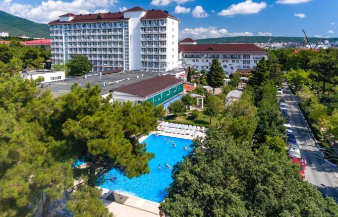 Что касается инфраструктуры санатория, то отдыхающим предлагается воспользоваться камерой хранения, магазинами, открытой охраняемой парковкой. На территории здравницы есть бар у бассейна, летний бар, кафе, столовые, часть пунктов питания от здравницы расположены в Геленджике за пределами здравницы. Повара санатория предлагают постояльцам европейскую, украинскую, восточную, итальянскую кухню на выбор. Бассейнов в санатории 3: один из них крытый и наполнен минеральной водой, другой открытый, а в третьем, предназначенном для детей, вода подогревается. Для маленьких гостей предусмотрены аниматоры, детский сад, клуб и прочие развлечения. Для занятий спортом можно арендовать на месте весь необходимый спортинвентарь.