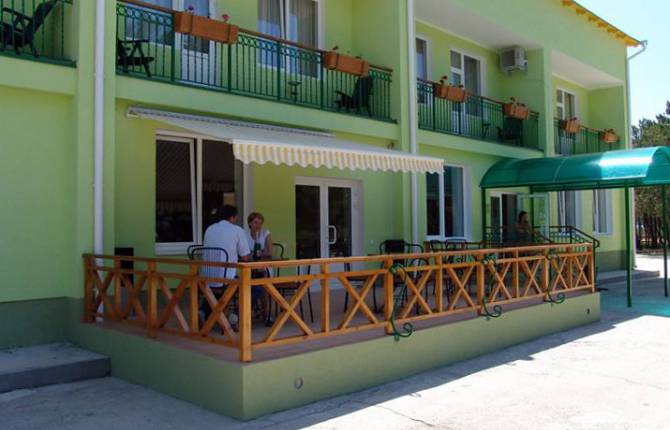 Отель находится в самом центре поселка Песчаное, отдаленность от моря составляет 50 метров, пляж – в 200 м от пансионата. На территории проживания отдыхающих постоянно присутствует как холодная, так и горячая вода. Также здесь можно воспользоваться бассейном с подогреваемой пресной водой, сыграть в американский или русский бильярд. За дополнительную плату, которая осуществляется на месте, отель может обеспечить отдыхающего питанием.