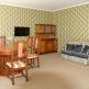 Двухместный двухкомнатный люкс представляет собой комнату площадью 12,6 м кв. с гостиной площадью 25,6 м кв. на первом этаже. Здесь вам предоставляются 2 спальная кровать с тумбочками, трюмо, шкаф, стол со стульями, холодильник.