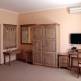 Однокомнатный двухместный полулюкс представляет собой комнату площадью 21,9 м кв. на втором этаже. Здесь вам предоставляется 2-спальная кровать с двумя тумбочками, трюмо, шкаф, стол со стульями, вешалка, холодильник.