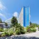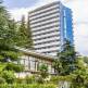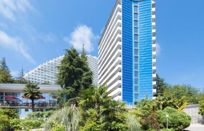 Комплекс зданий санатория состоит из шестнадцатиэтажного жилого и лечебного корпусов, а также столовой, клуба и водолечебницы. Размещение гостей в спальном корпусе здравницы, где есть четыре лифта, производится в одноместных или двухместных комфортабельных номерах нескольких категорий. В каждом номере есть холодильник, санузел с душем, телевизор и балкон, откуда открывается красивый вид на Черное море или на дендропарк. Кроме того, в значительной части номеров установлены кондиционеры и телефоны.