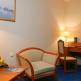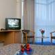 Проживание в отеле возможно в номерах различной степени комфорта. Стандартные номера состоят из одной комнаты, где есть вся необходимая мебель: кровати (одна, или две), шкаф, кресло, стол и стулья. В качестве дополнительного места используется еврораскладушка. Стандартные номера могут быть двух, или одноместные. Номер люкс состоит из двух комнат. И в нем, помимо стандартной меблировки, добавляется набор мягкой мебели. Также во всех номерах стоит телевизор и холодильник. Работает сплит-система, и в каждом номере предусмотрен свой санузел с душем.