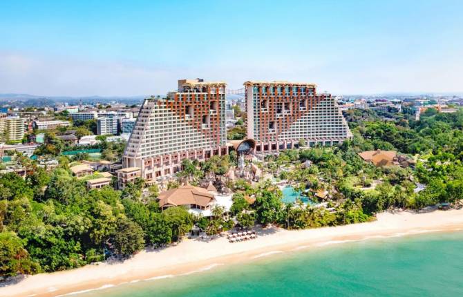 Отель достаточно новый, основался в 2009 году и был отреставрирован в 2013. Расположен на берегу моря пляжа Wong Amat, в 10 минутах езды от центра ночных развлечений Walking Street. Огромный отель предоставляет 555 комфортабельных номеров к размещению гостей. Номера содержат в себе кондиционер, плоскоэкранный телевизор со спутниковом телевидением и российскими каналами, набор для приготовления чая или кофе, мини-бар, сейф, ванную комнату со всеми удобствами. Имеются отдельные семейные номера и номера для некурящих. Разнообразные рестораны оставят всех гостей довольными: Oasis с тайской и международной кухнями, ресторан Ginger & Lime с блюдами азиатской кухни, Aqua с итальянской кухней и морепродуктами, гриль-ресторан Flames с барбекю, пляжный клуб Coast, в нем предлагается широкий выбор мяса и морепродуктов на гриле, а также множество различных коктейлей. Ценители активного отдыха найдут увлечение по своему усмотрению. Здесь можно поиграть в теннис, бильярд, заняться дайвингом, аэробикой или йогой. Гостей ждут оздоровительный спа-центр и огромные бассейны с удивительным дизайном. Для детей имеются детский бассейн, игровая зона, мини-клуб с развлекательной программой. Родители могут воспользоваться услугами няни. В номера добавляются детские кроватки и детские стульчики. В ресторанах есть специальное детское меню.