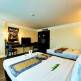 Все номера в курортном комплексе оснащены ванной комнатой со стандартным набором принадлежностей для поддержания гигиены. В комнатах есть кондиционер, телефон, сейф, телевизор, мини-бар и набор для приготовления кофе и чая. Уборка и смена постельного белья проводится ежедневно. В ресторане подают бесплатные завтраки с широким выбором блюд тайской и средиземноморской кухни. В баре вам нальют различные напитки, тропические коктейли зарубежного и местного происхождения. Для детей в отеле оборудован мелкий бассейн и игровая площадка. За дополнительную оплату можно воспользоваться услугами няни. По запросу вам в номер поставят детскую кроватку. Провести время в отеле можно расположившись у бассейна. Для активных отдыхающих есть возможность поиграть в настольный и большой теннис (платно). За дополнительную плату можно сходить на сеанс массажа. На территории курортного комплекса функционирует 3 конференц-зала, пункт обмена валют, прачечная, интернет кафе и различные магазины. Стойка регистрации работает для гостей 24 часа в сутки. За отдельную оплату персонал отеля организует вам различные увлекательные экскурсий. Гости могут брать напрокат автомобили и велосипеды на платной основе. Пляж общественный, расположен через дорогу от отеля. На пляже шезлонги и зонтики предоставляются платно, полотенца – бесплатно. Также есть возможность арендовать оборудование для проведения активного пляжного досуга.