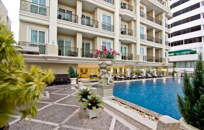 Номера отеля оснащены кондиционером, телевизором, телефоном, DVD/CD плеером, сейфом, холодильником и мини-баром. Есть ванная комната (с душем либо ванной и феном) и оборудованная мини-кухня. Доступна сеть интернет. Уборка производиться каждый день, номера обслуживаются круглосуточно. Ресторан отеля «Circle» предоставляет гостям выбор блюд международной и местной кухни. Отдыхающие могут заказать ужин в номер. На территории отеля также расположена кофейня. Разнообразить времяпрепровождение на территории отеля гости могут отдыхом в открытом бассейне с джакузи (в саду), парной или сауне либо тренировкой в фитнес-центре. На пляже отдыхающие могут попробовать свои силы в водных видах спорта. Для детей оборудован бассейн. Так же гости могут воспользоваться дополнительными услугами экскурсионного бюро, камерой для хранения багажа, бизнес-центром или услугами прачечной (за дополнительную плату). Пляж песчаный, расположен в пешей доступности от отеля. На пляже шезлонги и зонтики предоставляются платно.