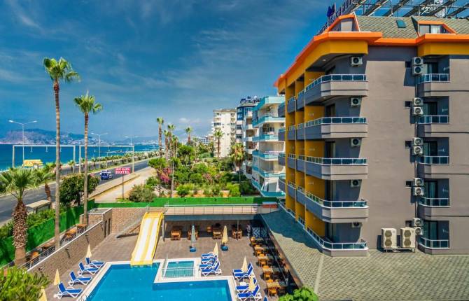 Отель представляет собой 6-этажное здание и располагает небольшой компактной территорией. В номерах имеется кондиционер, мини-бар, телевизор и балкон. В ванной предусмотрен фен. Гости могут заказать обслуживание в номер круглосуточно. В отеле есть частный участок пляжа, где туристы смогут позагорать на шезлонгах и поплавать в чистой морской воде. Также, можно освежиться в открытом бассейне. На берегу моря отдыхающие смогут арендовать необходимую экипировку для занятий водными видами спорта или поиграть в пляжный волейбол. Днем гостям предлагают принять участие в развлекательно-спортивных мероприятиях. Питание в ресторане отеля подается в виде открытого буфета. Гостям предлагаются блюда традиционной турецкой и международной кухни. В баре можно заказать горячие и прохладительные напитки. Отдыхающие с детьми могут дополнительно воспользоваться услугами няни. Рядом с отелем находится продуктовый супермаркет и остановки общественного транспорта, откуда можно легко добраться до Алании. На соседней улице два раза в неделю работает турецкий базар. Кроме того, в поселке множество туристических агентств, которые помогут организовать экскурсии по окрестностям.