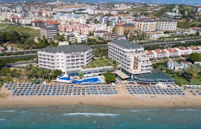 Этот отель находится на берегу моря, расстояние всего 50 метров. Буквально за 20 минут можно пешком дойти до центра города Авсаллар, где есть очень много разных мест для развлечения. На автомобиле всего за 20-25 минут можно доехать до Алании, а чуть больше минут за 40 можно попасть в знаменитый древний городок Манавгат. В отеле в наличии 248 номеров стандартного типа и семейного. В номерах есть отдельная душевая, кондиционер, санузел, фен, телефон, телевизор со спутниковыми каналами, мини-бар. Во всех номерах есть балкон с красивым видом. На территории отеля работает ресторан, бар, камера хранения багажа. Можно воспользоваться за дополнительную плату услугами парикмахерской, прачечной, салона красоты, отправить по факсу важный документ, а также воспользоваться арендой авто. Из развлечений на территории есть несколько бассейнов, теннисный корт, сауна, настоящая турецкая баня, фитнес центр. Гости отеля могут поиграть в настольный теннис, в бильярд, дартс, водные виды спорта, сходить в тренажёрный зал, пройти первый уроки по дайвингу и поплавать на каноэ. В ресторанах очень разнообразное меню. Есть возможность попробовать блюда национальной кухни и не только. У бара можно заказать алкогольные и безалкогольные напитки, попробовать вкусные коктейли местного разлива. Импортные спиртные напитки предоставляются за отдельную плату. Пляж находится вблизи отеля на расстоянии 50 метров. На территории пляжа можно пользоваться зонтиками и шезлонгами бесплатно. Для детей на территории отеля есть отдельная площадка, бассейн, игровой клуб. В номера по запросу предоставляются детские кроватки, а в ресторанах есть стулья для кормления. По запросу можно заказать платную услугу няни.