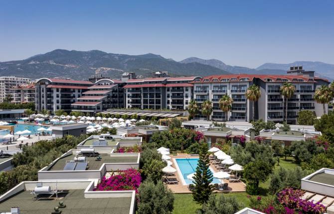В данном гостиничном комплексе находится более трёхсот номеров различных типов. Каждый из номеров оснащен комфортабельной мебелью и стильной фурнитурной, а также оборудован телевизором со спутниковыми каналами, телефонным аппаратом, балконом, холодильником, кофеваркой, чайником, личной ванной комнатой с душевой кабиной, туалетом, феном и гигиеническими принадлежностями, электрической духовкой, кондиционером и сейфом. В инфраструктуру отеля входит вестибюль, рецепция, сувенирная лавка, ювелирный магазин, парикмахерская, бутик, мини-маркет, магазин сумок, терраса, лифт и сейф на ресепшене. На территории гостиничного комплекса располагается девять ресторанов. В «Ginger» гости могут насладиться вкуснейшими и ароматно приготовленными традиционными блюдами международной и региональной кухни; в «Palm Aqua A la carte» - изысканные новинки от шеф-поваров, а в итальянском ресторане - наиболее популярные блюда. В барах отеля гостям предлагают закуски, прохладительные напитки местного и импортного производства, незабываемые коктейли, большой выбор вин и соков. Гостиничный комплекс предлагает такие услуги, как беспроводной бесплатный интернет, круглосуточная стойка регистрации, прачечная, глажение одежды, камера хранения багажа, пункт обмена валют, прокат автомобилей, трансфер в и из аэропорта, а также факс и ксерокопирование. Среди развлечений, предоставляемых отелем, открытые плавательные бассейны, вечерняя и дневная анимация, развлекательные шоу, пляжный волейбол, аквааэробика, теннис, мини-гольф, бильярд, прокат велосипедов, настольный теннис, боулинг, сеанс расслабляющего массажа, традиционный турецкий хаммам, спа-центр и тренажёрный зал. Для самых маленьких гостей на территории комплекса оборудован неглубокий бассейн, игровая площадка и детская комната. Пляж содержится в зоне общественного. На пляже зонтики, шезлонги и матрасы предоставляются за дополнительную плату.
