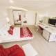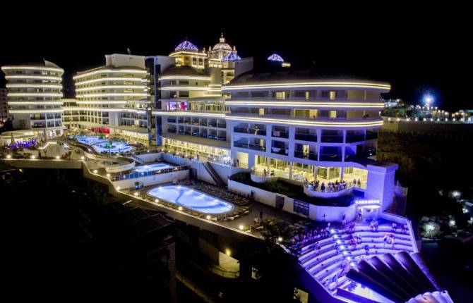 Отель располагает достаточно интересной инфраструктурой. К ней относятся: парковка автомобилей, интернет-кафе, мини-маркет и сувенирный магазин, где отдыхающие могут приобрести любую интересную памятную вещь. Предлагаются все типы услуг. Например, имеется возможность воспользоваться медицинскими услугами, фотографа, услугами прачечной и химчистки. Отель так же активно занимается организацией банкетов и тожественных церемоний. Общее количество номеров подразделяется на стандартные и семейные номера. Так же имеются номера для людей с ограниченными возможностями и номера для некурящих. В каждом из них имеется полный пакет удобств, необходимых для хорошего отдыха: телевизор с кабельными каналами, кондиционер, ванная и туалет, телефонный аппарат. Так же в номерах встроена система пожарной сигнализации. В каждом номере обустроен балкон. Осуществляется постоянное обслуживание номеров. Что касается досуга, то данный отель предоставляет большой ассортимент для выбора варианта организации своего времяпровождения. Например, отдыхающие могут играть настольный теннис пляжный волейбол, дартс, бильярд. Расположено несколько открытых плавательных бассейнов с водными горками. Оборудован SPA-центр с большим спектром косметических услуг для лица и тела. Так же имеется оборудованный фитнесс-центр для продуктивных тренировок. Персонал отеля активно занимается организацией дневных и вечерних развлекательных программ с живой музыкой. Питания осуществляется по системе «all inclusive». На территории отеля функционирует 2 ресторана, где отдыхающие могут отведать блюда турецкой и средиземноморской кухонь. Имеется несколько действующих баров, включительно и у бассейна. Где представляется большой ассортимент алкогольных и безалкогольных напитков. Активно организовывается детский досуг. Функционирует детская игровая комната, оборудован плавательный бассейн. Имеется детская игровая площадка, оснащенная всем необходимым инвентарем.