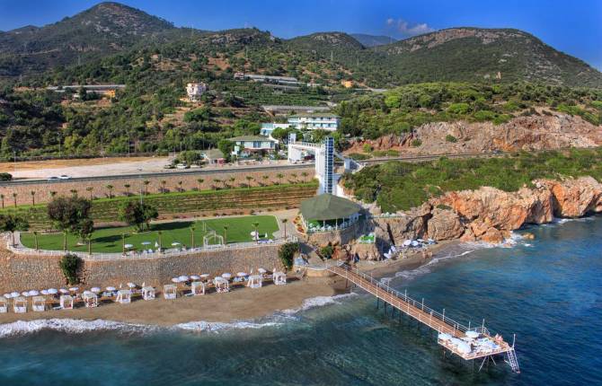 Общая площадь территории отеля – 7000 кв.м. Отель предлагает достаточное количество комфортабельных номеров. В номерах есть ванна (душ), предоставляется фен, мини-бар, кондиционер, кабельное/спутниковое ТВ, телефон, детская кроватка и балкон/терраса. Надежный сейф предоставляется за дополнительную плату. Обслуживание номеров круглосуточное. На территории отеля работают 2 ресторана: основной – с закрытой и открытой секцией и A’la carte ресторан. Гостей приятно удивит разнообразие блюд и широкий выбор напитков местных баров. Для малышей предоставляются детские стульчики. Из развлечений: действует открытый бассейн 6 кв.м., игры в дартс, бочча, пляжный волейбол, турецкая баня, аэробика и настольный теннис в полном распоряжении гостей. Платные услуги: пилинг, настольный футбол, бильярд, водные развлечения и услуги массажа. Для детей имеется мини-клуб (4 - 12 лет), детская площадка, бассейн (6 кв.м.) и детский клуб. На территории отеля есть автостоянка, интернет-кафе, парикмахерская, салон красоты и при необходимости также можно воспользоваться услугой врача. В 3-5 минутах ходьбы находится собственный песчано-галечный пляж. Есть вся необходимая атрибутика. Между отелем и пляжем проходит дорога и променад. Бар на пляже (11:00-17:30 безалкогольные напитки).