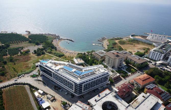Номера оборудованы ванной комнатой, в которой есть гигиенические принадлежности и фен. В комнатах есть кухня со стандартным набором кухонной атрибутики и аксессуаров. Номера оснащены спутниковым телевидением, электронным сейфом, телефоном, кондиционером и мини-баром. Основной ресторан имеет широкую открытую террасу для принятия трапезы. Здесь вы сможете насладиться широким выбором блюд турецкой и международной кухни. Питание осуществляется по системе «все включено» с дополнительными приемами пищи в определенные часы: свежие фрукты, прохладительные напитки и турецкие лепешки. В барах вам нальют разнообразные напитки, коктейли и подадут деликатные закуски. Собственный пляж отеля оборудован шезлонгами, полотенцами и зонтиками, пользование которыми входит в стоимость проживания в комплексе. Активные отдыхающие смогут посещать тренажерный зал. Восстановительные и оздоровительные процедуры включают в себя: сауну, турецкую баню, массажный кабинет. Услуги фотографа, химчистки, врача, прачечной, парикмахерской, тату салона, аренды автомобилей и посещение крытого бассейна оплачиваются отдельно. Конференц-залы рассчитаны на прием 275 персон.