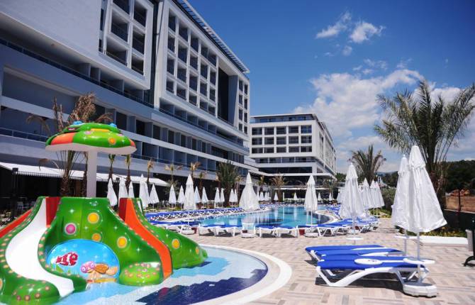 Отель расположен за городом на берегу моря и занимает территорию в 105.000 м?. Комплекс уникален тем, что здесь древние руины, имеющие историческую ценность, контрастируют с современными зданиями. Отдыхающие могут разместиться в 285 номерах, 242 из которых стандартные, 10 номеров-Swimup, 10-Superior. В комплексе также предусмотрены номера для людей с ограниченными физическими возможностями. Для семейных пар подготовлены 20 номеров. Время, проведенное на пляже, станет для гостей отеля незабываемым хотя бы потому, что пляж располагается в древнем порту, время постройки которого датируется 200 гг. до н.э. Лежаки и зонтики установлены прямо в уютной песчаной бухте. На пляже работает бар. Восполнить запас сил и энергии можно в ресторанах отеля. Здесь отдающие могут попробовать блюда азиатской кухни, барбекю, любители сладкого могут заглянуть в кондитерскую. В отеле есть семь бассейнов: открытый бассейн и закрытый бассейны, бассейн в аквапарке бассейн, бассейн Relax, бассейн номеров Swim up, бассейн с водопадом и бассейн для детей. Плавая в открытом бассейне, гости могут насладиться прекрасным видом на море. Для любителей экстрима и горок открыт аквапарк, в котором отдыхающим скучно не будет. С наступлением вечера эпицентр жизни отеля переносится с пляжа в ночной клуб. За детьми в возрасте от 4 до 12 лет присмотрят в мини-клубе, пока их родители будут наслаждаться отдыхом. Родители могут заказать в ресторане специальное детское и диетическое меню. А перед вечерним представлением маленькие гости отеля смогут от души повеселиться на детской дискотеке. После водных процедур в бассейне или на пляже отдыхающие могут расслабиться в SPA-салоне, турецкой бане и сауне.