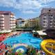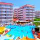 Отель, расположенный на второй линии от моря, всегда остается в центре внимания туристов, так как он находится в самом сердце Алании. В гостиничном комплексе отдыхающих размещают в двух-, трехместных номерах. Также есть специальные апартаменты, предназначенные для людей, ограниченных физически. Во всех номерах есть огромный балкон, с которого можно полюбоваться красивыми пейзажами, и кондиционер. Персонал отеля внимательно следит за чистотой и порядком в номерах, поэтому здесь предусмотрена услуга – уборка комнат. На территории гостиничного комплекса гости могут искупаться в открытом и крытом бассейнах, расслабиться в гидромассажной ванне, сходить в сауну, турецкий хаммам, записаться на массаж. Отдыхающие могут показать свое мастерство в игре в бильярд, дартс, настольный теннис. В ресторане комплекса подают традиционные блюда провинции Анталия и средиземноморского региона Турции. Насладиться вкусом местной кухни можно как в помещении, так и на открытом воздухе. По желанию гостей, блюда из ресторана могут быть доставлены в номера. В барах отдыхающие могут продегустировать прохладительные напитки. Пока взрослые занимаются своими делами, дети могут весело и с пользой провести время в мини-клубе или поплавать в детском бассейне. А вот домашних любимцев придется оставить дома, так как в отель их не пустят.