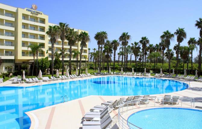 Эта гостиница находится на побережье Средиземного моря и предлагает гостям для размещения стандартные номера (25 кв.м), connection rooms, номера для молодёжи с выходом к бассейну, deluxe rooms, номера люкс, а также номера для людей с ограниченными физическими возможностями. В каждом номере есть ванная, душ, фен. Работает центральный кондиционер, телевизор, телефон, сейф, фен, балкон. Люкс отличается повышенным уровнем комфорта. В таком номере есть большая двуспальная кровать. На территории отеля работает два ресторана, которые могут вместить одновременно 600 человек, 6 баров, бассейны, теннисный корт, кабинет врача (платно), торговый центр, магазины, автостоянка, парикмахерская, прокат авто, прачечная, конференц-зал, интернет-кафе, пункт обмена валют. В пределах комплекса работает СПА-центр, где можно получить качественные косметические услуги по уходу за лицом и телом. Для детей есть детские площадки. Работает мини-клуб. Услуги няни предоставляются за отдельную плату. Бесплатно гости отеля могут пользоваться дискотекой, где напитки предоставляются на платной основе, посещать тренажерный зал, играть в пляжный волейбол, степ, аэробику. Массаж и подводное плавание предоставляется на платной основе. В этом отеле размещение с домашними животными запрещено.