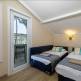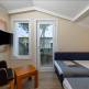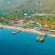 Собственный песчано-галечный пляж простирается на 900 м. Вокруг таинственные горы, покрытые хвойными деревьями, что делает воздух таким же кристально чистым, как и море.