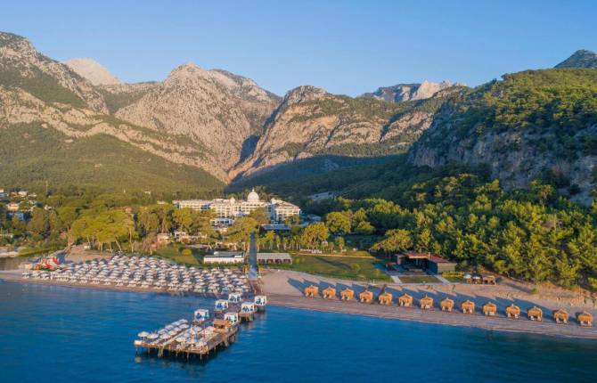Это спокойное и уютное место, со всех сторон окруженное величественными горами, всеми оттенками зелени и лазурными водами Средиземного моря. Находится неподалеку от исторических достопримечательностей, живописных улочек и многочисленных развлечений курортно-туристического города. В инфраструктуру отеля входит огромное количество бассейнов разных типов: большой, для анимации, с водными горками, детский, для младенцев, для релаксации и спа-бассейн. Песчано-галечный частный пляж находится в пешей доступности, где отдыхающие могут воспользоваться шезлонгами, зонтиками и матрасами. Для детей здесь предусмотрено 2 детских басейна, мини клуб, няня (платно), детское меню и кресло в ресторане, игровая детская площадка. Покушать здесь можно или в основном ресторане и в одном из пяти ресторанов а ля карт, где представлена турцкая, японская и итальянская кухни. Так же любители десертов смогут посетить кондитерскую. Отель предлагает своим гостям большое количество альтернатив разных типов номеров. Каждый из них оснащен кондиционером, спутниковым телевидением, мини-баром с прохладительными напитками, телефоном, ванной комнатой с душевой кабиной и феном, бесплатным wi-fi, халатами и тапочками. На территории гостиничного комплекса располагается тренажерный зал, теннисный корт, бильярд и площадка для мини-гольфа. Также гостям предоставляется возможность поиграть в волейбол на пляже, баскетбол, дартс и боулинг, заняться аквааэробикой и гимнастикой, арендовать велосипед и прокатиться по окрестностям, попробовать свои силы в серфинге и парусном спорте, покататься на катамаране или каноэ. Отдыхающие могут посетить танцевальные курсы, занятия йогой, посидеть в библиотеке в компании интересной книги. По вечерам устраиваются развлекательные анимационные шоу, и играет живая музыка, которую можно послушать в ресторане или баре за стаканом фирменного коктейля или за чашкой турецкого чая с вкуснейшими кондитерскими изделиями.