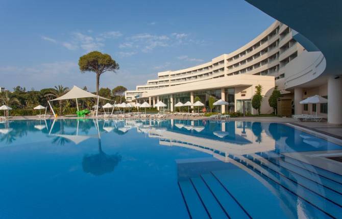 Отель расположен всего в 30 км от Антальи и в 5 км от Белека, потому к нему очень удобно добираться. Для более комфортного проживания и коммуникации, отель имеет русскоязычных сотрудников. Отель имеет одно пятиэтажное здание, где расположены 3 отличных ресторана, 2 бара, 2 конференц-зала, которые могут принять 80 человек, 2 бассейна, один из которых крытый и имеет подогрев. Для любителей тенниса есть 6 кортов с различным покрытием. Высококлассная прачечная всегда к вашим услугам. SPA салон и салон красоты предоставляют множество услуг. Также в отеле можно воспользоваться услугами врача. В лобби есть высокоскоростной бесплатный Wi-Fi. На прокат можно брать серф, каноэ и катамараны, для любителей активного отдыха на воде. Для любителей спорта имеется большой ассортимент площадок для занятий баскетболом, теннисом, пляжным волейболом, аэробикой и мини футболом. Весь инвентарь современный и соответствует всем нормам качества и безопасности. Если вы желаете расслабиться и восстановиться свои силы, то отель предоставит вам услуги массажиста, турецкую баню и сауну. Такое приятное время препровождения как посещение дискотеки, игра в дартс и катание на каноэ вы получите бесплатно. А вот за водные лыжи, катание с парашютом и гольф придется заплатить, если соизволите ими воспользоваться. В ресторане есть шведский стол, а вот любителям мексиканской кухни можно будет отведать любимые блюда только с 19:30 до 21:00. Песчаный пляж имеет длину 290 м. Зонтик, матрас, шезлонг и полотенце предоставляются отдыхающим бесплатно. В отеле расположено 180 номеров, площадь которых колеблется от 40 до 84 м2. Мини-клуб и детская площадка всегда будут в вашем распоряжении, а опытные аниматоры смогут весело и с пользой занять время ваших детей. В данном отеле созданы все условия для комфортного и безопасного семейного отдыха, который запомниться надолго, и оставит массу положительных эмоций и воспоминаний.