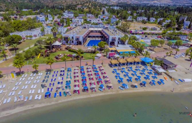Комплекс компактно расположен на Эгейском побережье. Гостей в отеле принимает приветливый англоязычный персонал. По отзывам постояльцев, гостиница предлагает оптимальное сочетание цены и качества в Битезе. Гостиница построена в виде двух корпусов современной постройки, где размещены 80 и 27 небольших стандартных номера. В каждом из них вы найдете удобную мебель, душевую, фен, мини-бар и кондиционер. Также отдыхающим можно пользоваться балконом или террасой, ТВ со спутниковой антенной, сейфом. На территории комплекса работает магазин, ресторан, есть несколько баров, можно воспользоваться конференц-залом. Есть сауна, хамам. Возможен трансфер в или из аэропорта. Есть два бассейна – крытый и открытый. Основной плюс этого комплекса – великолепное и чистейшее море. Там можно заняться различными водными видами спорта и даже покататься на виндсерфинге. Для детей предусмотрена минимальная анимация, работает детская площадка. В ресторане в ассортименте блюда европейской и турецкой кухни. Завтрак, обед и ужин сервируют в формате «шведского стола», дополнительно предлагается чай и кофе с печеньем. В баре у бассейна или на лобби можно попробовать алкогольные и безалкогольные напитки.