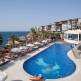Комплекс стоит на территории 18 тыс.кв. метров и состоит из 12 отдельно стоящих зданий. В номерах вы найдете всю необходимую мебель, душем или ванну, фен, телефон, сплит систему, балкон, мини-бар, TV со спутниковыми каналами и сейф. По запросу можно получить детскую кроватку. Номера небольшие, достаточно простые, все интерьеры выполнены в духе минимализма. На территории отеля есть 3 открытых бассейна с тремя водными горками для развлечений. Для удобства гостей работает врач, прачечная, почта. В фитнес-центре и тренажерном зале каждый может позаниматься спортом, поиграть в настольный теннис, дартс или бильярд. Отдыхающих ждет сауна и турецкая баня, массажный кабинет. Все вечерние и экскурсионные развлечения гости смогут найти в городе Гюмбет. Для деток есть открытый бассейн с двумя горками, есть мини-клуб, игровая площадка. В ресторане можно брать блюда детского меню и пользоваться детским креслом. В отеле работает 2 ресторана, с широким выбором блюд, кормят разнообразно и вкусно. Система питания – AI. В трех барах можно заказать прохладительные алкогольные или безалкогольные напитки.