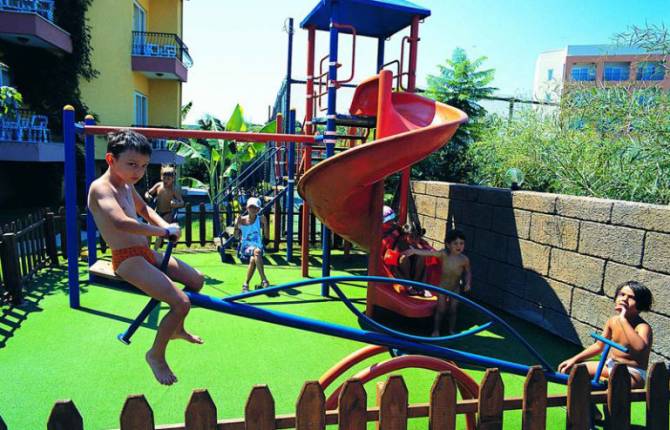 В комплекс входит основное трехэтажное здание. Персонал очень внимательный, однако русскоговорящих сотрудников встретить можно редко. На территории работает доктор, можно воспользоваться услугами парикмахера и прачечной на платной основе. Отель подходит для комфортного, недорогого отдыха. О детях здесь также позаботились. Для детей предоставляются детские кресла в ресторане. Работает детская площадка, мини-клуб. По запросу родителей, в номере бесплатно устанавливают детскую кроватку. Территория отеля большая и очень живописная. В комплексе есть 96 номеров, каждый из которых имеет либо балкон, либо террасу. В номере есть все удобства, уборка осуществляется ежедневно. В отеле есть неплохой ресторан, где подают блюда международной и местной кухни. В баре подают безалкогольные и алкогольные напитки на любой вкус. Комплекс предоставляет бесплатную автомобильную парковку, а беспроводным интернетом здесь можно воспользоваться на платной основе. С утра до вечера проводятся различные развлекательные мероприятия, в том числе и дискотеки. В команде аниматоров работает 4 человека, есть русскоговорящие. Кроме моря можно покупаться в открытом бассейне, а также опробовать водные горки. Для расслабления отдыхающих на территории отеля построили турецкую баню, есть массажный кабинет и сауна. По желанию, можно заняться водными видами спорта и дайвингом. Пляж находится в пяти минутах ходьбы от комплекса. На его территории можно бесплатно воспользоваться шезлонгами, зонтиками, полотенцами. Пляж галечный, длиной в 40 метров. Отличный отель для семейных пар с детьми. Номера уютные, очень комфортные условия отдыха.