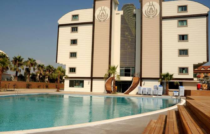 Этот 4-звёздочный комплекс расположен в посёлке Чолаклы и занимает территорию в 20 тысяч квадратных метров. Здесь есть доступны номера стандартного типа и семейного. В стандартном номере может проживать максимум три человека. Площадь номера составляет 25 кв.метров. В семейных номерах есть две комнаты. В таком номере может разместиться 4 человека. Номер более просторный и занимает 35 кв.метров. В каждом номере есть кондиционер, ванная, фен, телевизор, спутниковые каналы, телефон, платный сейф. В мини-баре есть только питьевая вода. На полу присутствует ламинированное покрытие. Можно пользоваться балконом. Номера убираются ежедневно. Смена постельного белья происходит три раза в неделю. Питание в отеле предоставляется по системе "Всё включено". В систему входит завтрак, обед и ужин. В течение дня предоставляются на выбор вкусные закуски, выпечка, чай, кофе, алкогольные и безалкогольные напитки местного производства. Импортные напитки, свежие соки предоставляются на платной основе. В отеле работает основной ресторан, где большой выбор блюд турецкой кухни. На территории отеля есть несколько бассейнов, торговый ряд, конференц-зал, который рассчитан на 130 человек, кабинет врача, парикмахерская, прокат авто, пункт обмена валют, прачечная. Есть две водные горки. Массаж, услуги СПА, дискотека в отеле бесплатная. Гости отеля могут играть в дартс, бильярд, настольный теннис, волейбол, пользоваться тренажерным залом, заниматься аэробикой. Есть возможность взять в аренду велосипед.