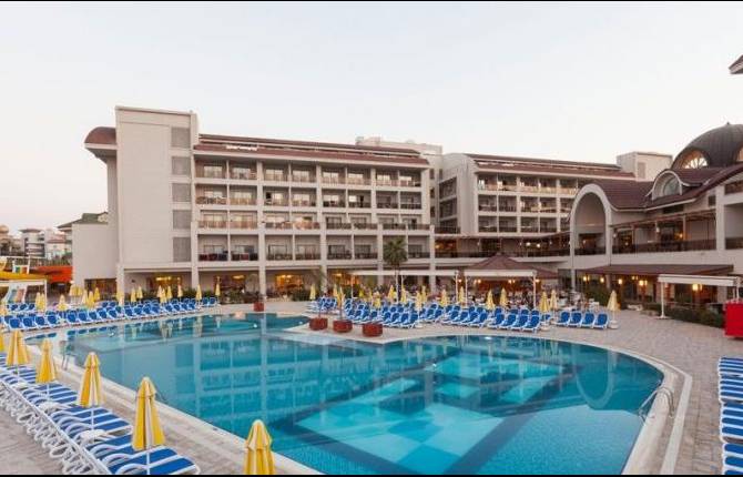 Этот 4-звёздочный отель расположился недалеко от известных достопримечательностей Турции на берегу Средиземного моря. Площадь отеля составляет 9 тыс.квадратных метров. Сам отель состоит из нескольких корпусов, где можно забронировать номер. На территории имеется красивый сад, есть зоны для отдыха, занятия спортом. На выбор можно снять семейный или стандартный номер. В каждом номере есть кондиционер, собственная душевая, санузел, фен, банные принадлежности, телевизор со спутниковыми каналами, мини-бар. Номера в отеле обслуживаются круглосуточно. На территории работает камера хранения, сейф, торговый центр, ТВ-зал, интернет-кафе. Можно за дополнительную плату заказать услугу врача, сходить в парикмахерскую, на массаж или в СПА-центр. Здесь можно расслабиться и привести свое тело в порядок и почувствовать себя в тонусе во время отдыха. Бесплатно можно играть в теннис, волейбол, плавать в бассейне, ходить в тренажерный зал. Для детей в отеле работает детский бассейн, мини-клуб и есть своя дискотека. В ресторане богатый выбор блюд турецкой кухни и не только. Питание подаётся по системе "всё включено". На пляже, у бассейна, в лобби отеля работают бары, которые предлагают большой выбор алкогольных и безалкогольных напитков. Оплата принимается банковскими платёжными картами Visa и MasterCard.