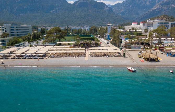 Отель находится в живописном курортном поселке Гюйнюк, недалеко от Кемера. На его территории есть много вечнозеленых насаждений, есть красивый, декоративно оформленный сад для отдыхающих. Номера оборудованы ванной комнатой и балконом, также там имеется спутниковое телевидение, центральное кондиционирование, фен, сейф, мини-бар, телефон. Если температура на улице опуститься до некомфортного предела, во всем комплексе включат отопление. В комплексе функционирует 3 ресторана (в главном вы получите 5 разовое питание). Рыбный и Турецкий ресторан предложат вам изысканные деликатесы за отдельную плату. Четыре бара предоставят вам большой выбор алкогольных и безалкогольных напитков местного и зарубежного производства, а в Английском пабе вы сможете насладиться различными видами пива. Напитки и еда после 23:00 за дополнительную плату. Отель предлагает большой ассортимент услуг, включенных в стоимость проживания; это возможность посещения сауны, турецкой бани, фитнес центра, джакузи. Сюда входят игры в настольный теннис, пляжный волейбол, дартс и мини футбол. Ежедневно команда профессиональных аниматоров будет проводить свои развлекательные мероприятия на протяжении дня, и показывать вечернюю шоу-программу. За отдельную плату можно воспользоваться массажем, пилингом, бильярдом и пойти интернет кафе. Для детей есть мини-клуб (возраст 4-12 лет), площадка для игр и бассейн с горками. Проводятся развлекательные программы. Всего в 100 м ходьбы расположен собственный пляж отеля, на котором свободно можно пользоваться зонтиками, шезлонгами, полотенца и матрасами. На территории пляжа есть бар.