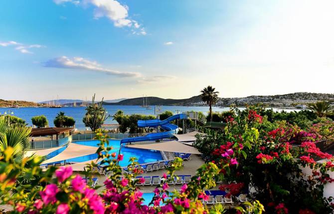 В этом отеле можно забронировать семейный номер или стандартный. Стандартный номер рассчитан на троих. В таком номере есть одна большая двуспальная кровать или два односпальных места. В семейном номере есть односпальное место, двуспальная кровать и один диван-кровать. В наличии есть семейный номер, который рассчитан на двоих взрослых и двоих детей. В таком номере есть односпальная кровать, одна двуспальная кровать и один диван-кровать. В номерах есть душевая, ванная комната с банными принадлежностями, сейф, мини-бар, балкон с видом. На территории работает парковка для авто, стойка регистрации, камера хранения багажа, пункт обмена валют, банкомат. Отдыхающие могут пользоваться открытым бассейном, фитнес-центром, сауной, посещать СПА-центр, ходить на массаж. С домашними животными в отеле нельзя размещаться. Из спортивных развлечений отдыхающим доступна вечерняя программа, водные виды спорта (платно), дайвинг (оплачивается отдельно), каноэ (платно), библиотека. Можно играть в дартс, настольный теннис, бильярд, в большой теннис. На территории есть стена для скалолазания, а также площадка для мини-гольфа. Дети могут проводить время в бассейне, на игровой площадке. Для детей есть мини-клуб от 4 до 12 лет. По запросу можно за дополнительную плату заказать услугу няни. В отеле персонал разговаривает на турецком, русском, голландском, французском, английском и немецком языке. За дополнительную плату можно организовать трансфер в аэропорт.