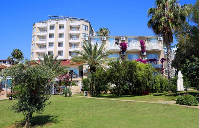 В главном корпусе отельного ансамбля находится 155 номеров двух типов: «standard room» и «family room». Каждый из них оборудован ванной комнатой с душевой кабиной, феном, индивидуальным кондиционером, телевизором с российским каналом, телефонным аппаратом, мини – баром (вода и прохладительные напитки – бесплатно в день заезда), сейфом и балконом. На территории отеля есть два ресторана. В основном гостям предлагают систему питания «все включено», а в ресторане a la carte отдыхающие могут насладиться традиционными блюдами региональной кухни, турецкими лепёшками и кондитерскими изделиями. Среди бесплатных услуг, предлагаемых гостиничным комплексом отдыхающим, посещение традиционного турецкого хаммама, сауны, фитнесс-центра, занятия аэробикой и аквааэробикой, пляжный волейбол, настольный теннис, дартс, бочча, живая музыка, а также весёлые развлекательные анимационные шоу-программы. За дополнительную плату гости могут заказать сеанс расслабляющего массажа, поиграть в бильярд и заняться водными видами спорта на пляже. Для самых маленьких посетителей на территории гостиницы оборудованы три неглубоких бассейна и игровая площадка. В нескольких минутах ходьбы от отеля располагается собственный песчано-галечный пляж, на котором отдыхающие имеют возможность бесплатно пользоваться шезлонгами, зонтиками и пляжными полотенцами. Этот отель расположен в красивейшей местности, неподалёку от живописного курортного городка – Алания, в который обязательно стоит отправиться и посмотреть исторические достопримечательности, заглянуть в сувенирные магазины и насладиться чашечкой ароматного традиционного кофе в стильном кафе.