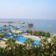Отель расположен на первой линии от моря, имеет свой пляж, на котором отдыхающие могут освежится вкусными коктейлями и отдохнуть в тени за стойкой бара, заняться безмоторными (бесплатно) или моторными (платно) видами спорта или сыграть в волейбол. Матрасами, зонтиками, шезлонгами и полотенцами постояльцы могут пользоваться бесплатно. Просторные, светлые номера обеспечат вам комфортный отдых. В каждом из них есть мини-бар (пустой), сейф (бесплатно), телевизор с российским и музыкальным каналом, кондиционер и уютный балкон на котором вы можете приятно провести время за чашечкой кофе. Маленьких постояльцев порадует 2 просторных бассейна с водными горками, детская площадка, мини-клуб (от 4 до 12 лет), интересная развлекательная программа каждый день. В ресторане отдельное детское меню и специальные кресла для комфортного отдыха малышей. На территории располагаются 6 баров с богатым выбором различных алкогольных напитков, коктейлей и соков. Так же в них есть возможность насладиться насыщенным, ароматным фруктовым чаем и сладостями. Главный ресторан предлагает разнообразие блюд традиционной и турецкой кухни по системе «ультра всё включено». Витамин-бар и Amphi Bar радуют постояльцев вкусным мороженым, а ресторан A la carte предоставляет 1 бесплатный ужин (при проживании более 7 ночей). В отеле представлен большой выбор услуг для интересного проведения досуга. Здесь вы можете освоить стрельбу из лука, заняться аэробикой, поиграть в воздушный хоккей, теннис или дартс. Отдохнуть на сеансе массажа, в турецкой/финской бане или сауне (бесплатно). Посетить шоппинг центр или порадовать близкого человека заказав прекрасный букет (платно). За отдельную плату можно воспользоваться услугами прачечной, арендовать машину для деловых поездок или мини экскурсии. А в вечерний отдых ярких красок добавит позитивная атмосфера дискотеки и увлекательные анимационные развлечения.