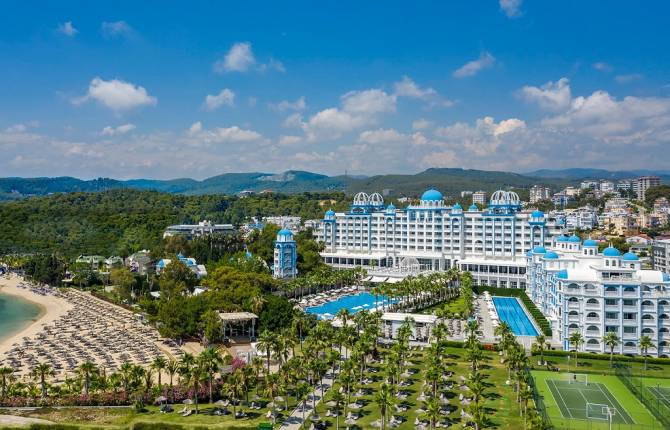 Номерной фонд данного отеля имеет подразделение на стандартные, «Президентские виллы», «Вилла Сьют». В каждом номере имеется весь спектр необходимых атрибутов для комфорта: душ или ванна, телефон, фен, телевизор, мини-бар и сейф (бесплатное пользование). В каждом номере оборудован балкон или терраса. Персонал тщательно следит за ухоженностью номеров, производя уборку ежедневно. Отель имеет обширную инфраструктуру. В нее входят: SPA-салон, конференц-залы. На территории отеля расположено 3 бассейна, среди которых 2 являются открытыми. Отдыхающим предлагаются услуги бизнес центра, прачечной. Данный отель предлагает большое разнообразие развлечений для любителей активного отдыха. Например, возможна организация досуга с участием настольного тенниса, волейбола, баскетбола, пляжного волейбола. Отдыхающие так же имеют возможность арендовать катамаран, покататься в каноэ. На территории отеля имеется комфортабельный теннисный корт, где так же можно платно взять уроки тенниса. Отель имеет турецкую баню, предоставляет услуги массажного отдыха для расслабления после активного времяпровождения. Данные услуги являются платными. Питание в данном отеле осуществляется по системе «ultra all inclusive». На территории отеля функционирует 4 тематических ресторана, где отдыхающие могут попробовать большой ассортимент различных блюд европейской и восточной кухонь. В баре представлен широкий спектр всевозможных напитков. Для детей функционирует мини-клуб, есть несколько игровых комнат. Так же имеется луна-парк, где дети смогут активно провести время. Персонал занимается организацией детских развлекательных программ. При возникновении необходимости отдыхающие могут воспользоваться услугами няни. Просторный песчаный пляж расположен рядом с отелем. На пляже зонтики, шезлонги, матрасы и полотенца: бесплатно.