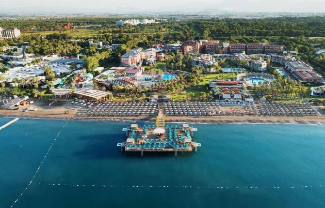 Достаточно большой отель семейного типа с общей территорией в 120 тысяч метров квадратных. Предлагает разнообразное питание высокого качества. Дети могут рассчитывать на специальные блюда. Сама территория отеля хорошо ухоженная. Выделяются зеленые парки с красивыми деревьями и кустами. В отеле работает команда профессиональных аниматоров, которые подбирают подходящие развлечения как для детей, так и для взрослых. На территории расположены 7 ресторанов, 9 баров. В большом конференц-зале помещается до 350 персон. Общее количество комнат составляет 522. В лобби есть доступ к бесплатному беспроводному интернету. Пляж в отеле песчано-галечный. В дневное время там функционирует бесплатный бар. Также на пляже можно получить зонтики, матрасы, полотенца и шезлонги. Для детей функционирует открытый бассейн, 2 водные горки. Дети в возрасте от 4 до 14 лет могут посетить мини-клуб, также на территории расположена игровая площадка. Услуги няни, а также детская коляска, предоставляются платно. В номере гостей ждет телевизор (есть русский телеканал), кондиционер, бесплатный сейф и мини-бар. Если необходимо, можно установить детскую кровать. Из бесплатных развлечений можно выделить фитнес-клуб, сауну, хамам, теннисный корт (мячи и ракетки также предоставляют бесплатно). Также гости могут поиграть в настольный теннис, бадминтон, мини-гольф, поучиться серфингу (при наличии лицензии), пострелять из лука, покататься на катамаране. По вечерам проводят дискотеки и другие развлекательные программы. Из платных предложений есть джакузи, солярий, массаж, дайвинг, водные лыжи, каноэ.