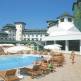 В основном в отеле расположены небольшие номера от 25 до 47 м2. В комнатах есть все необходимое: фен, сейф, ТВ, мини-бар, который обновляется каждый день, халаты, тапочки. На территории отеля можно воспользоваться парикмахерской, конференц-залом с современной техникой. Питание в отеле организованно по системе «все включено». Отель имеет 5 тематических ресторанов и 7 баров, один из которых расположен на пляже. В ресторанах подают блюда как местной, так и международной кухни. Бары предоставляют широкий выбор напитков и коктейлей. Для детей здесь есть аквапарк, мини-клуб с игровыми зонами и даже спальный уголок для совсем маленьких ребят. Стульчики для кормления есть в ресторанах. На прокат можно взять коляску. Услуги няни предоставляются платно. Отдыхающие бесплатно могут воспользоваться турецкой баней и сауной. За отдельную оплату можно заказывать еду прямо в номер, заказать комплекс SPA и косметических процедур, массаж. Для любителей активного развлечения и спорта отель предлагает 9 бассейнов, при желании можно поиграть в баскетбол, теннис и волейбол. В аквапарке имеются различные водные горки для экстремального спуска. В вечернее время проходят представления, которые проводят профессиональные артисты и акробаты. Вход на дискотеку “Amethyst” свободный. На протяжении дня аниматоры проводят развлекательные мероприятия. Частный песчаный пляж находится недалеко от отеля. Транспортировка происходит несколько раз на день за счет курортного комплекса. Непосредственно на нем вы сможете воспользоваться зонтиками, шезлонгами, матрасами и полотенцами бесплатно.