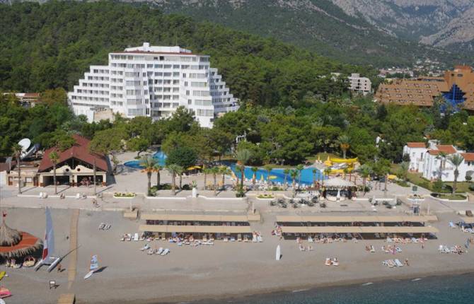 Отель базируется в поселке Гойнюк, недалеко от Кемера и международного аэропорта в Антальи. Главное здание имеет 7 этажей и декоративный дизайн. Рядом находится несколько 2-х и 3-х этажных комфортабельных отелей коттеджей. Курортный комплекс имеет большой выбор номеров от стандартных до президентских люксов с большой площадью. Номера оснащены ванной комнатой, с гигиеническими принадлежностями балконом или террасой. В комнатах есть фен, сейф, спутниковое телевидение с русскоязычными каналами, центральное кондиционирование, телефон и мини-бар. Смена постельного белья происходит 3 раза в неделю, а уборка номеров – ежедневно. Ресторан и бары работает по системе «все включено», а 2 ресторана типа a la carte предоставят свои услуги по предварительной записи. В 5 барах можно насладиться безалкогольными и алкогольными напитками местного и зарубежного производства. В больших конференц-залах может поместиться 1000 персон. Открытый и крытый бассейн всегда к вашим услугам. Для любителей активного отдыха есть широкий ассортимент спортивных развлечений: большой и настольный теннис, аэробика, мини футбол, пляжный волейбол, дартс, бильярд, баскетбол, стрельбу из лука. Тренажерный зал оснащен базовым набором инвентаря для проведения полноценных тренировок. Водными виды спорта (каноэ, виндсерфинг, дайвинг, водные лыжи и мотоцикл, банан, катамаран, парашют) можно заняться на пляже. Расслабиться и восстановить силы вы сможете в турецкой бане, сауне, джакузи и массажном кабинете. Развлекательные шоу программы, живая музыка и дискотеки провидятся с помощью опытных ди-джеев, аниматоров и артистов. Прачечная, салон красоты, услуги врача и обслуживание номеров входят в платный перечень услуг. Частный галечно-песчаный пляж расположен прямо возле отеля и имеет в наличии весь ассортимент пляжных аксессуаров: зонтики, матрасы, шезлонги и полотенца, которыми можно пользоваться бесплатно. Для детей оборудован мини-клуб и детская площадка. Один из бассейнов имеет водные горки. Аниматоры проводят развлекательные мероприятия для малышей.