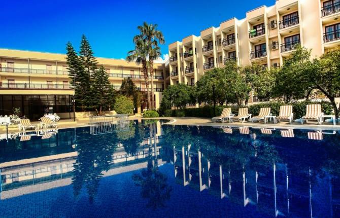 Хороший уютный отель, общая площадь которого составляет 6800 кв.м. Он состоит из двух 4-этажных корпусов. Всего 52 стандартных номера. Находится в 200 метрах от городского пляжа (5 минут пешком). До аэропорта – 55 км. Прекрасно подойдет для спокойного отдыха с детьми. Аккуратные номера с удобной мебелью, приветливый персонал, вкусные завтраки. Подойдет для бюджетного размещения. В номере есть все необходимое для приятного и беззаботного отдыха. Курение в номерах отелях запрещено. Для детей оборудован специальный детский бассейн. В отеле предлагают самые различные развлечения. Есть как платные, так и бесплатные услуги. При необходимости персонал предоставит детские стульчики в ресторане. Гости могут воспользоваться услугами массажа, попариться в сауне и хамаме. Отдыхающим предоставляется аренда велосипедов, и заняться водными видами спорта. Даже на отдыхе гости могут следить за своей фигурой и питанием, поскольку кухня разнообразна блюдами, и каждый найдет то, что ему по душе. Во владениях отеля есть ресторан для тех, кто хочет культурно провести вечер. Многообразность блюд приведёт в восторг гостей с любыми вкусовыми предпочтениями. Питание в системе «все включено». Вокруг отеля находится множество ресторанов, кафе и магазинов. Есть куда сходить, скучать на отдыхе не придется. Между пляжем и отелем есть автомобильная дорога. На городском общественном галечном пляже и у бассейна есть вся атрибутика: шезлонги, солнцезащитные зонтики, матрасы – платно. При желании и необходимости можно вызвать врача и воспользоваться услугами прачечной за дополнительную плату. Автомобильная стоянка для отдыхающих совершенно бесплатно. На территории отеля работает обмен валют.