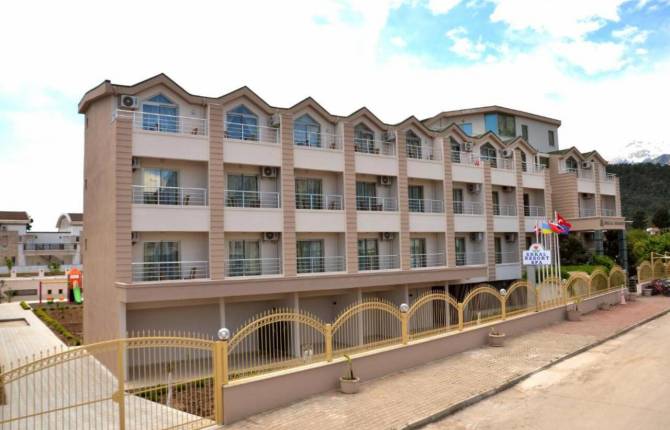 Уютный небольшой отель находится неподалеку от центра города Кемер и приглашает туристов провести приятный спокойный отдых. К выбору гостей представлены как стандартные, так и семейные номера с круглосуточным обслуживанием. Условия проживания комфортные, в номере есть кондиционер, телевизор со спутниковыми каналами, мини-бар и сейф. Ванная комната оборудована душевой кабиной, имеется фен. Кроме того, гости отеля имеют возможность воспользоваться камерой хранения. Ресторан в отеле предлагает гостям свежие вкусные блюда традиционной турецкой и интернациональной кухни. Сервируют трапезы по принципу фуршета, питание организовано по системе «все включено». Два бара на территории отеля приглашают отдыхающих отведать разнообразные напитки и коктейли. В отеле есть собственный частный песчано-галечный пляж. Он находится через дорогу от отеля, в 600 метрах. Гостям предоставляются шезлонги, зонты и матрасы. Пляжные полотенца можно получить под залог. Тут гости смогут заняться различными видами водного спорта. Также, неподалеку, в 200 метрах от отеля, находится городской пляж. В дополнение гости могут понежится на солнце у бассейна и насладиться прекрасным видом на горы или покататься на водных горках на территории отеля. Для самых маленьких оборудован детский бассейн. На территории отеля отдыхающие могут воспользоваться услугами прачечной, посетить парикмахерскую. Желающие пройти оздоровительные процедуры смогут посетить сауну и сеансы профессионального массажа.
