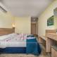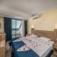 Отель представляет собой девятиэтажное здание, рассчитанное на 99 номеров. Из каждого номера открывается потрясающий вид на море. Сам корпус расположен в уютном и укромном месте через дорогу от моря. Отель – это идеальное место для гостей, которые мечтают провести отпуск в тишине и спокойствии. Гости могут разместиться в 96 стандартных номерах, двух номерах типа Connected rooms и одном номере Disabled room. В номерах имеется кондиционер, телефон, телевизор со спутниковым ТВ, мини-бар, радио, сейф. Для отдыхающих с ограниченными возможностями предусмотрены специальные номера. При отеле есть чистый пляж с мелким песком. В ресторане с открытой площадкой, рассчитанной на 200 человек и закрытой – на 150 человек, можно попробовать традиционные блюда турецкой кухни. В барах можно заказать и продегустировать вина, коктейли, прохладительные напитки. Быстро перекусить гости могут в пиццерии, выбрав пиццу на свой вкус. На территории отеля располагаются открытый и закрытый бассейны, где могут весело провести время, как взрослые, так и дети. У отеля есть собственный аквапарк, посещение которого подарит отдыхающим массу положительных впечатлений. Расслабиться и порелаксировать можно в турецкой бане, в джакузи или во время сеанса массажа. Поклонников активного отдыха заинтересуют водные развлечения. В отеле работает фитнес-клуб, имеется возможность сыграть в настольный теннис, бильярд, дартс. По желанию отдыхающие могут заказать услугу «будильник». В отеле немало развлечений для детей, для маленьких отдыхающих открыта игровая площадка, водные горки, детский клуб и бассейн.
