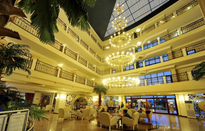 Этот комплекс находится на побережье Средиземного моря и занимает общую территорию в 10 тысяч квадратных метров. Отель состоит из одного основного 5-этажного здания, где есть в наличии стандартные номера и полулюкс, люкс, президентский номер, а также королевские апартаменты. В наличии номера для людей с ограниченными физическими возможностями. Стандартные номера есть с видом на море и без. Апартаменты полулюкс имеют 2 спальни, которые разделены межкомнатной дверью. В таком номере есть джакузи. Люкс номера состоят из спальни и гостиной. В таких номерах доступны джакузи, DVD и игровая приставка PS-3. Президентский номер занимает площадь в 85 кв.метров. В таком номере есть 2 спальни и одна гостиная. Королевский номер больше президентского на 25 кв. метров. Отличается от всех остальных специальным дизайном. Внутри есть гостиная комната с баром и рабочая зона. Здесь созданы все удобства, которые отвечают королевским апартаментам. Отель работает по концепции " Ультра всё включено". В стоимость проживания входит завтрак, обед и ужин, а также поздний завтрак и поздний ужин. Основной ресторан знаменит богатым шведским столом, а также специальными тематическими вечерами, блюдами турецкой и интернациональной кухни. Может одновременно принять 500 человек. На территории работает основной ресторан и A la carte рестораны, круглосуточные бары. Также на территории отеля есть собственная кондитерская, ночной клуб. Гости отеля могут пользоваться открытым и крытым бассейном, конференц-залами, услугами SPA-центра. Здесь есть много магазинов, где можно купить сувениры, ювелирные изделия, подарки, кожаные изделия. За дополнительную плату можно взять в аренду авто или воспользоваться услугой интернет-кафе. Также на территории есть кинотеатр, который работает с 16:00-22:30. В отеле нельзя проживать с домашними животными. Напитки, которые идут в бутылках предоставляются за отдельную плату. К оплате принимаются карты Visa, Mastercard. Пляж отеля имеет Голубой флаг, ISO 9001 и 10002 сертификат. Персонал разговаривает на нескольких иностранных языках. Номера убираются ежедневно.